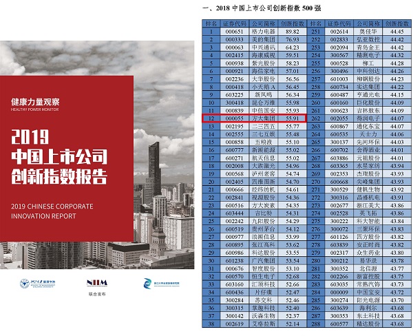 方大集團獲評“中國上市公司創新指數500強”